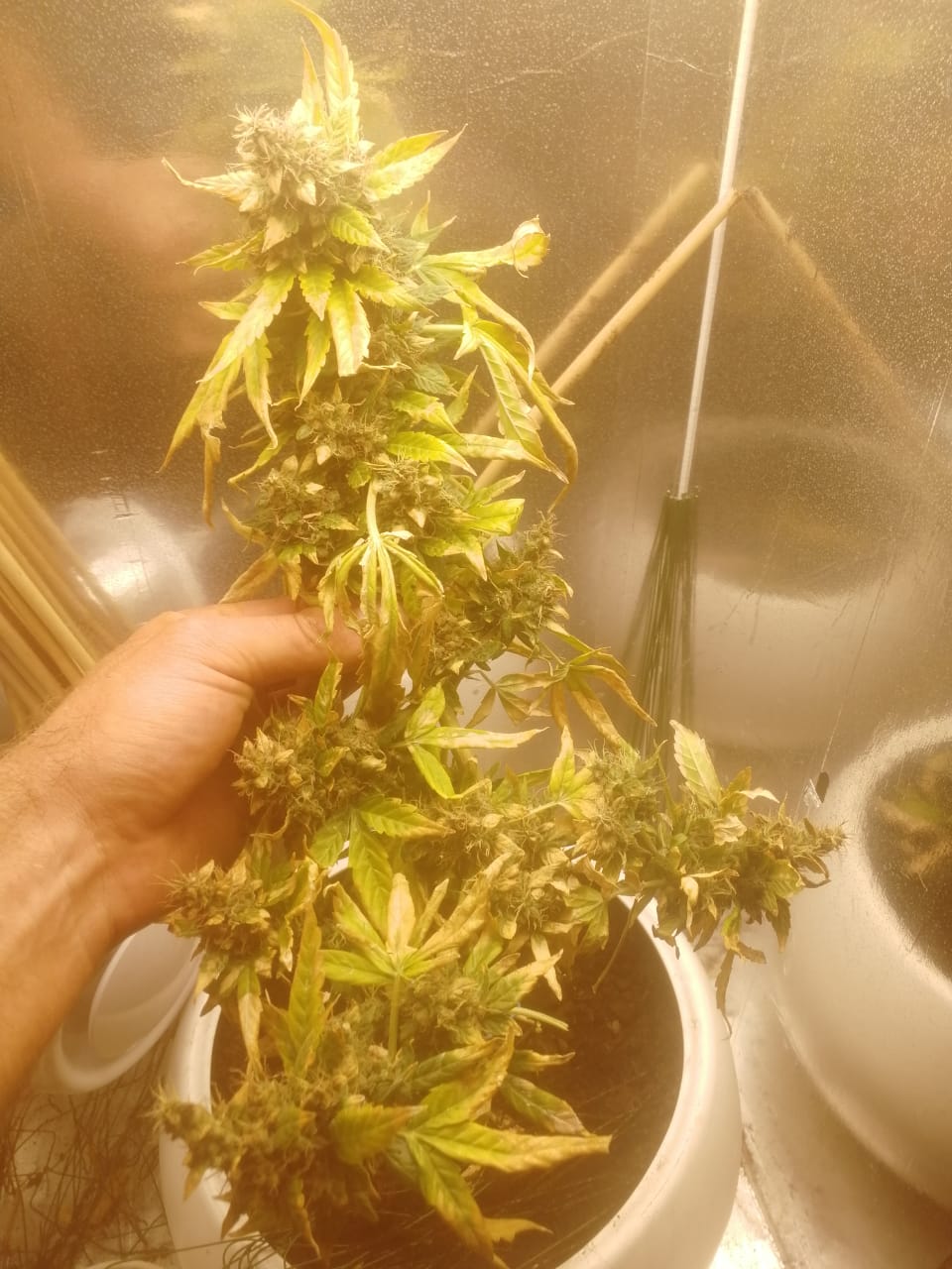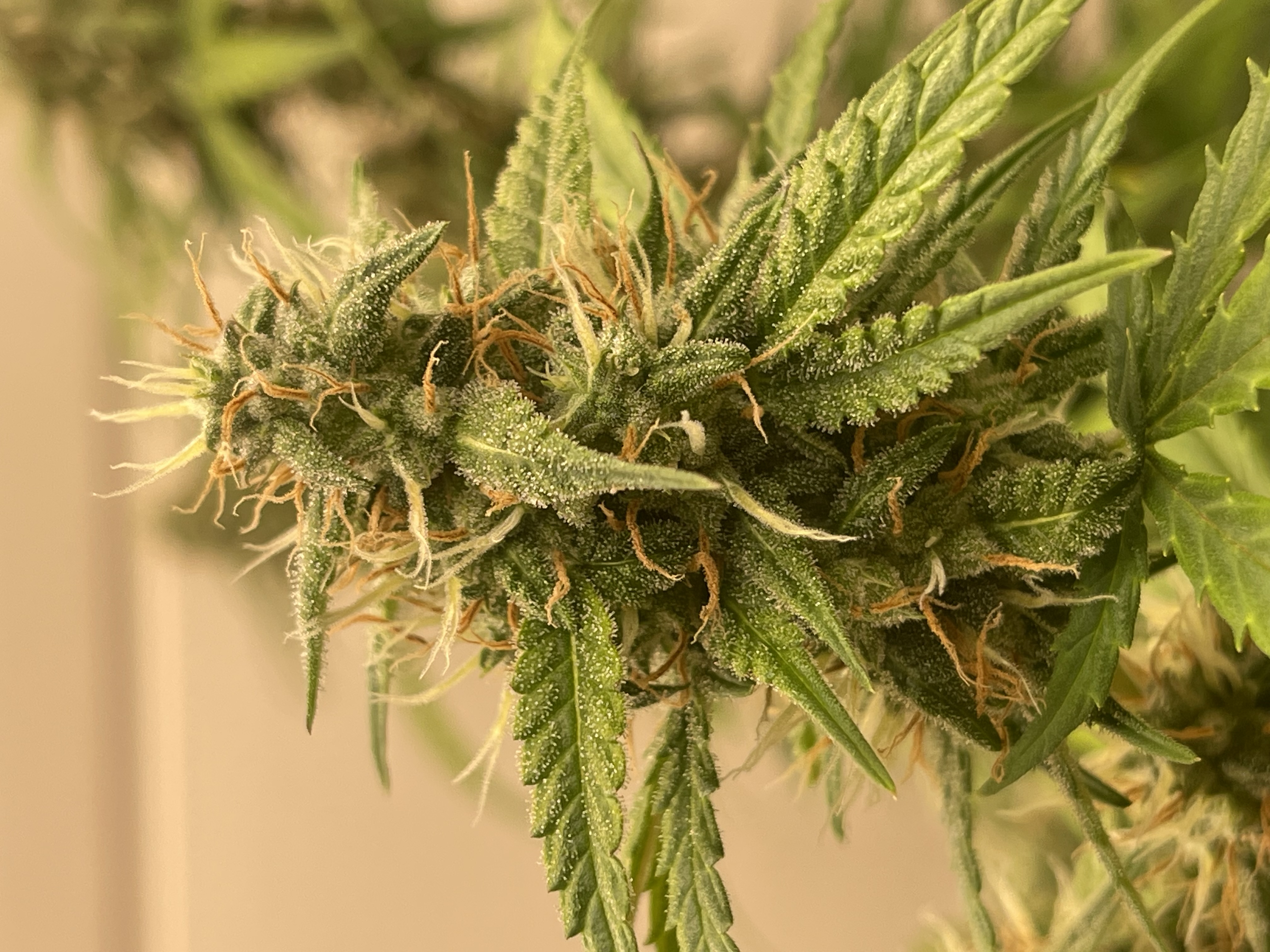 На фото девочке 56 дней от каски.Реверс,Буйские,Минифермер 200 Вт.Отличная генетика,растёт можно сказать прямо на глазах.Я думаю в паспортные 60-65 дней уложится.Понятное дело в ауте период созревания будет не менее 80 дней.Хорошее,смолистое,умеренно пахнущее растение.Пробовал с вапорайзера Duncan,прямо сырую,очень понравился вкус и эффект.На момент пробы преобладал индюшный эффект.На харве,после проблески возможно дополню отзыв.Рекомендую!!!