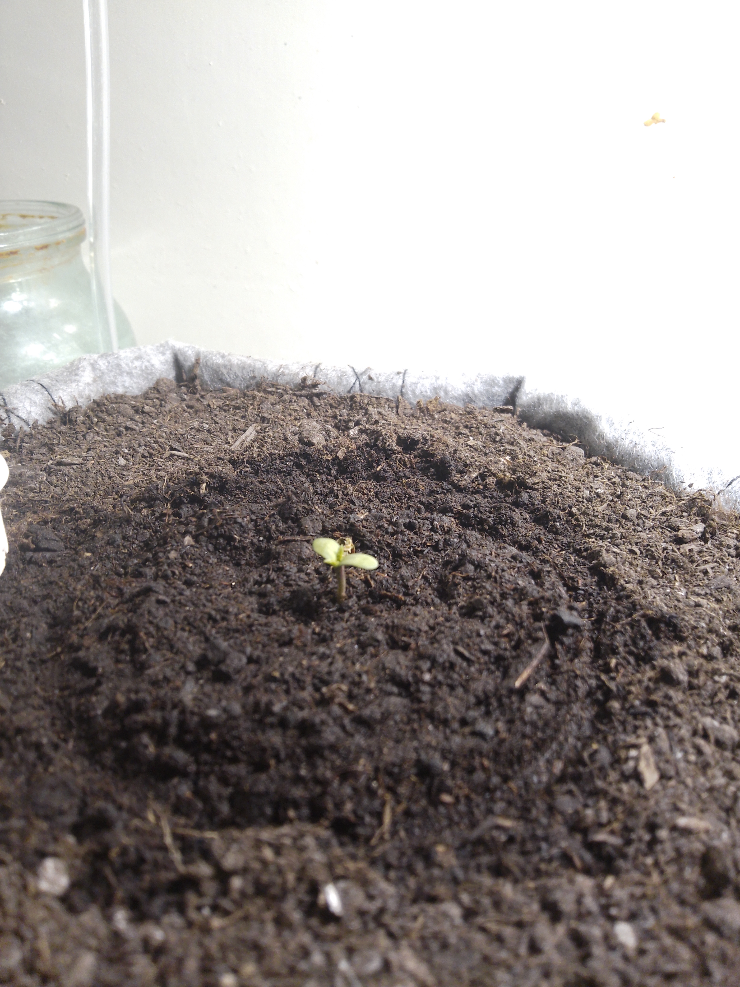 Подготовил горшок, и почву, отстоял воду, сегодня высадил семечку в горшок, накрыл, маленьким контейнером с дырочками, с права растет, fastbery auto fem, применяю лст треню