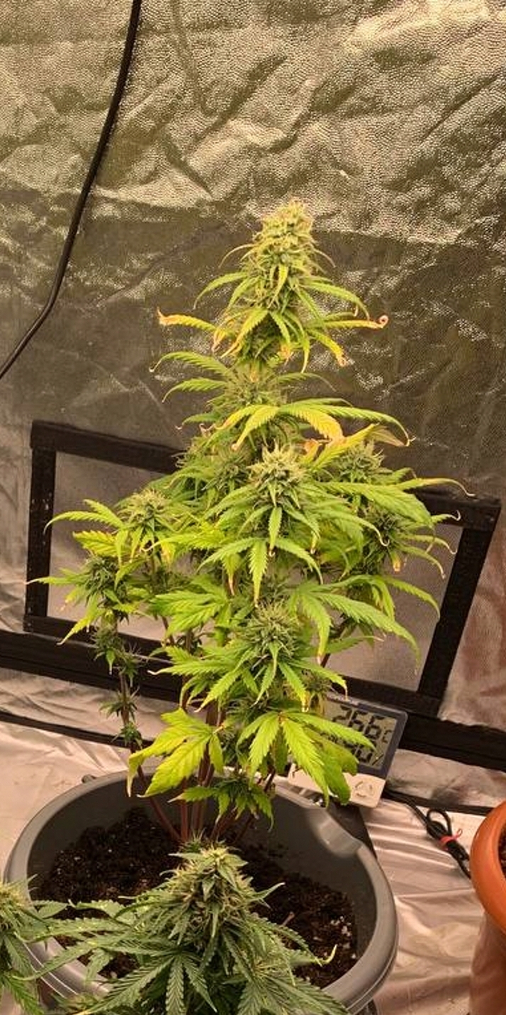 При правильном, четком, ухаживании куст хороший пышный, лопухи присутствуют только на центральной коле запах есть но не распространенный на ранней стадии запах бомба. Шишки плотные желательно что бы было сухо. Любит много света я ставил 20 на 2 любит много белого света. Не любит влагу вообще не любит влагу тут нужно быть осторожным иначе все пизда стрес причем такой конкретный стрес не любит плотный грунт тоже стрес.